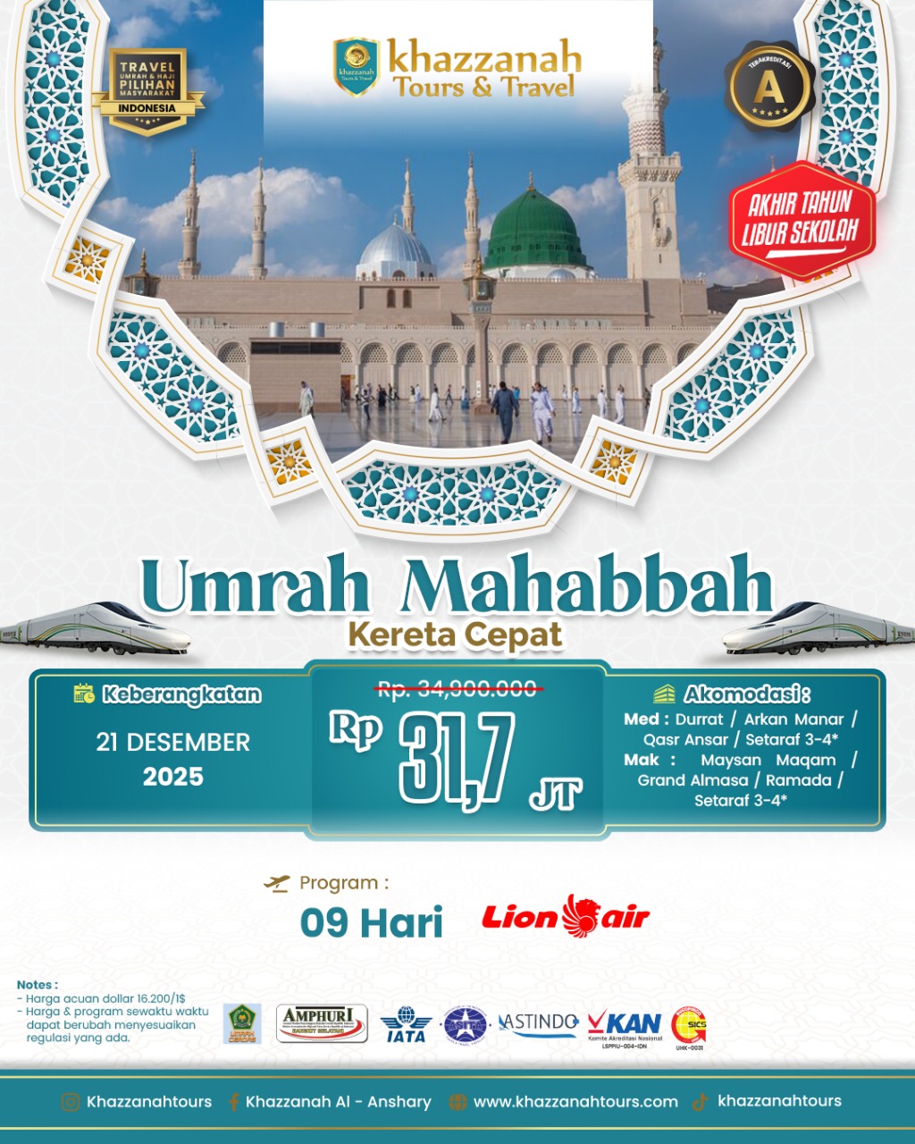 Jangan lewatkan kesempatan untuk menjadi bagian dari program umrah kami yang menawarkan harga terjangkau dan fasilitas modern yang lengkap. Segera daftar sebelum kursi terisi penuh!