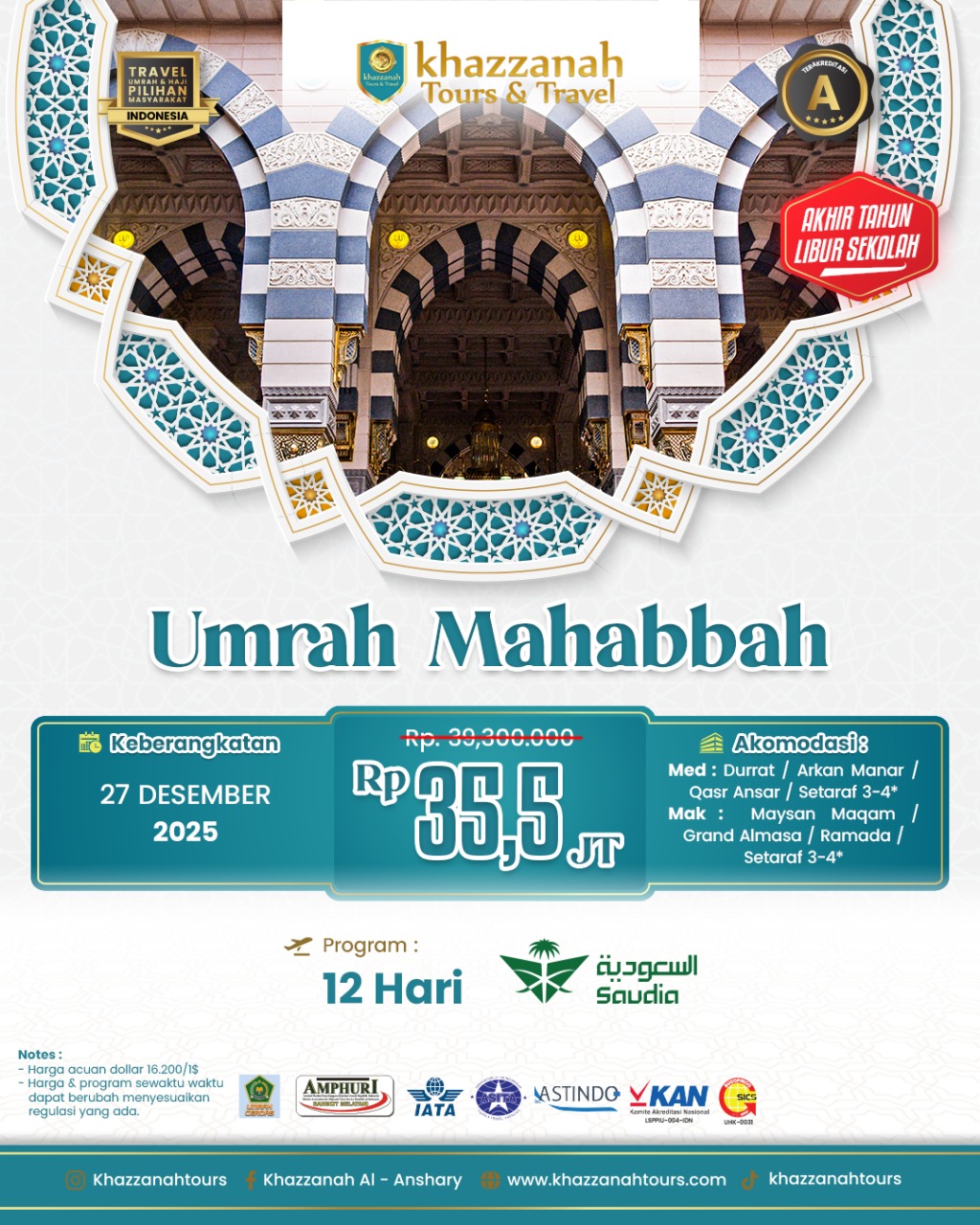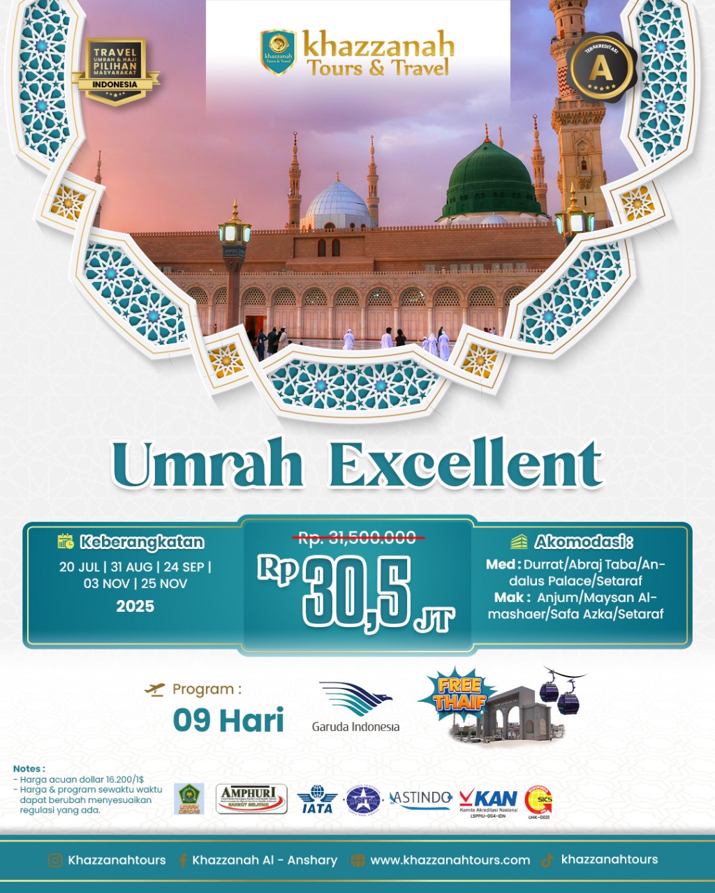 Jangan lewatkan kesempatan untuk menjadi bagian dari program umrah kami yang menawarkan harga terjangkau dan fasilitas modern yang lengkap. Segera daftar sebelum kursi terisi penuh!